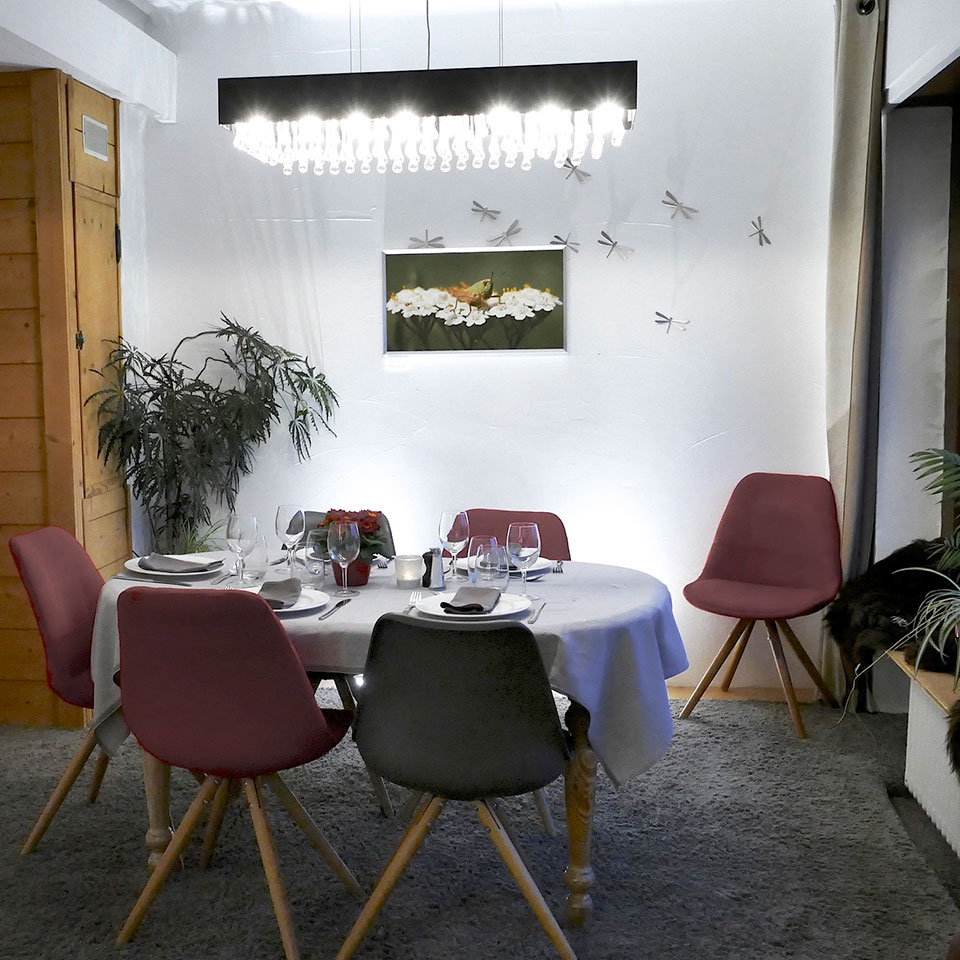 Our in-house restaurant offers a menu highlighting fresh seasonal products as well as specialities of the Savoie region. All our dishes are home-made, ensuring an exquisite taste experience. We exclusively cater to our in-house guests during the evening service.