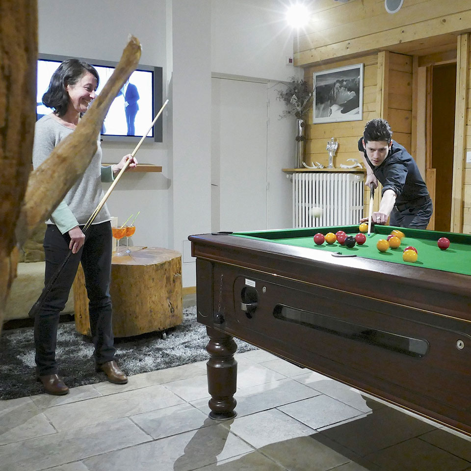 Nos grands salon face à la chaîne du Mont-Blanc, nos espaces autour de la cheminée vous invite à déguster une boisson fraîche et chaude. Pour un moment convivial, vous trouverez un espace billard, une salle de jeux pour les plus jeunes, jeux de société et un salon de lecture.